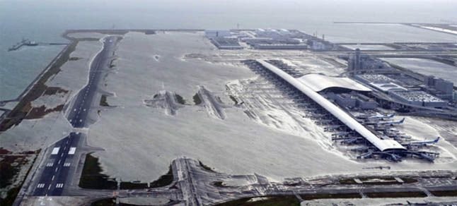 Tayfun nedeniyle uçak pistinin ve terminal binasının zemin katının sular altında kaldığı Kansai Uluslararası Havalimanı kapatıldı. Havalimanında yaklaşık 3 bin kişinin mahsur kaldığı bilgisi paylaşıldı.