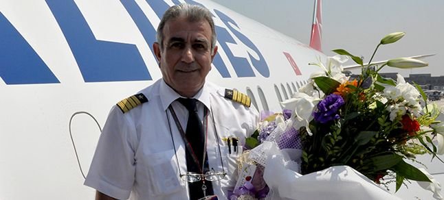 Türk Hava Yolları’nın tecrübeli kaptan pilotlarından 40 yıllık pilot İbrahim Bilir (63), yaş haddinden emekli oldu. İzmir-İstanbul seferinden sonra bayrağı THY’de kaptan pilot olan oğlu Göker Bilir’e teslim eden Bilir’i ailesi ve sevenleri de yalnız bırakmadı. Devlet adamlarının seyahat ettiği VIP uçaklarında da pilotluk yapan Bilir, ilginç bir anıyı da gazetecilerle paylaştı.