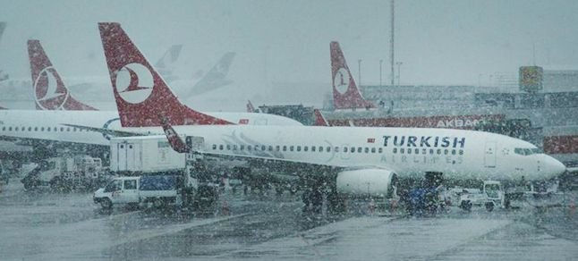 Açıklamada, “Değerli yolcularımız, İstanbul, Atatürk Havalimanı ve Sabiha Gökçen Havalimanı’nda beklenen meteorolojik hadise ve yoğun kar yağışı nedeniyle tablodaki seferlerimiz iptal edilmiştir.