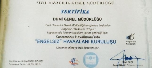 Kastamonu Havalimanı, Ulaştırma, Denizcilik ve Haberleşme Bakanlığı’na bağlı Sivil Havacılık Genel Müdürlüğü tarafından yürütülen proje kapsamında "Engelsiz Havaalanı Kuruluşu" unvanına layık görüldü.