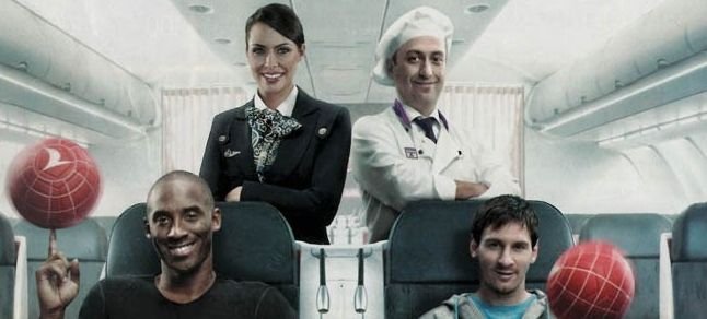 ABD’li basketbolcu Kobe Bryant ve Arjantinli yıldız futbolcu Lionel Messi’nin yer aldığı reklam fotoğrafında, bu ikilinin arkasında ayakta poz veren hostesin ruj renginin parlak kırmızı olması dikkat çekti.