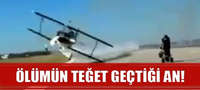 O sırada uzaklardan bir duman hızla kendilerine doğru yaklaşıyor ve dumanın ortasında beliren pervaneli bir uçak bir anda hem bisikletteki kocanın hem de olayı görüntüleyen kadının sadece santimler kadar uzağından geçiyor.