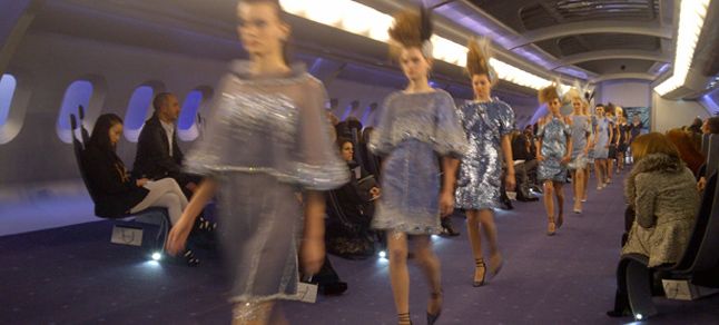 Mankenler kokpitten çıktı, uçak podyumda yürüdü.