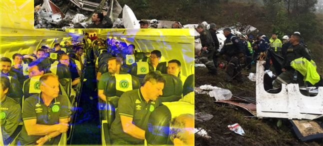 Bolivya’dan Kolombiya’nın Medellin kentine hareket eden ve Brezilya 1. Futbol Ligi ekiplerinden Chapecoense takımının teknik heyet ve oyuncuları dahil 77 kişinin (9’u mürettebat, 68’i yolcu) bulunduğu uçak dağlık araziye düşmüş, kazada 71 kişi hayatını kaybetmişti.