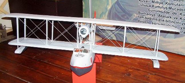 Türk Hava Kurumu Burhaniye Şube Başkanı Yücel Aras tarafından teslim edilen uçak maketinin İstiklal Savaşı’nda ilçe halkı tarafından satın alınan uçağın benzerinin olduğu bildirildi.
