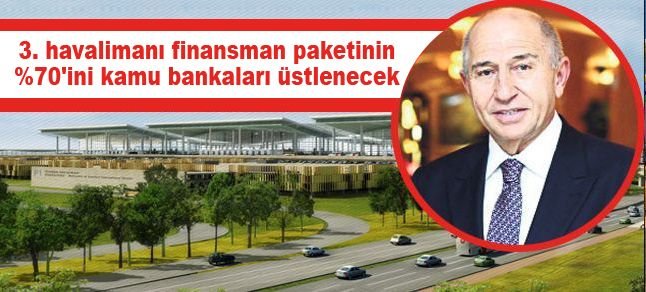 Limak Holding Yönetim Kurulu Başkanı Nihat Özdemir, İstanbul’a yapılacak üçüncü havalimanının ilk etap yatırımına yönelik 4.5 milyar euroluk finansman paketini 19 Ekim’de imzalamayı planladıklarını; toplam altı bankanın yer alacağı paketin yaklaşık yüzde 70’ini kamu bankalarının üstleneceğini söyledi. Özdemir, "Yapı Kredi çekilmeden önce paketin ağırlığı yüzde 60’a 40’tı. Ancak Yapı Kredi çekildikten sonra yüzde 70 kamu bankaları, yüzde 30 özel bankalar olacak gibi şekillendi" diye konuştu.