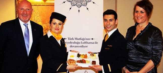 Avrupa’nın lider havayolu şirketi Lufthansa bu haftadan itibaren Türkiye-Almanya hattındaki uçuşlarında sunmakta olduğu hizmeti Türk Mutfağı’nın seçkin örnekleriyle zenginleştirecek. Uçaklarda ikram edilecek menüler Turkish Cultural Foundation bünyesindeki YESAM – Yemek Sanatları Merkezi tarafından Lufthansa için özel olarak belirleniyor ve dünyanın en büyük havayolu catering şirketi LSG Sky Chefs’in Atatürk Havalimanı’ndaki üretim tesisinde hazırlanıyor.