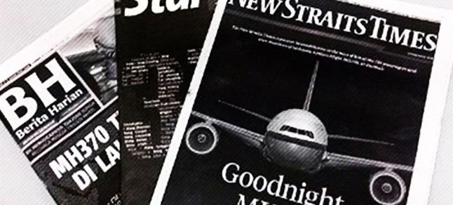 Ülkede İngilizce yayın yapan en büyük gazetelerden olan ‘The Star’ siyah zemin üzerine ölenlerin isimlerini yazarak uçağın sefer sayısını ifade eden 370 sayısını yazdı. Gazete sağ üst köşeye ise Malezya başbakanının uçağın akıbetiyle ilgili yaptığı açıklamayı ve gazete olarak duydukları büyük üzüntüyü ifade etti.
