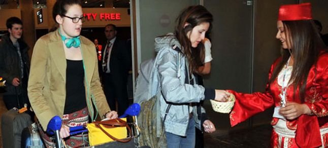 Havalimanına saat 10.45’te inen uçak, iki itfaiye aracının püskürttüğü suyla oluşturulan kemerin altından geçip aprona yaklaştı. Corendon Havayolları’na ait Alanya uçağı ile gelen Belçikalı turistlere lokum, çiçek ve nazar boncukları hediye edildi. Vali Şahin havalimanına oğlu Rozenlaan Veehost (12) ile gelen ilk turist Vanessa Veehost’a (52) çiçek verdi, bir süre sohbet etti.
