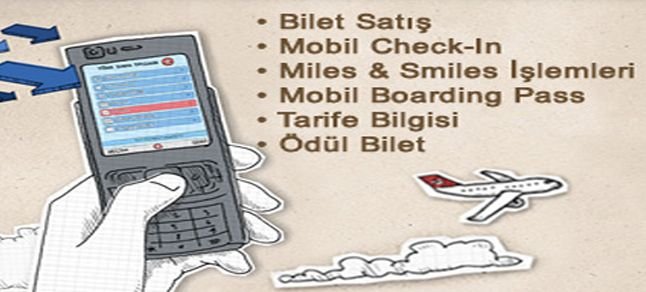 Mobil THY aplikasyonu, indir.mobil.thy.com adresi ya da 6849’a THY Mobil yazıp sms gönderilerek yükleniyor. Aplikasyonun yüklenmesi ile bilet alma, check-in, biniş kartı, kalkış-varış, tarife ve bagaj takibi yapılabiliyor. Check in işlemleri sistemle kontuara uğramadan telefondan yapılabiliyor. Check-in işlemi sonrasında boarding kartı, cep telefonuna mesajla barkod formatıyla geliyor. Cep telefonundaki barkod güvenliğe gösterilerek uçağa binilebiliyor.