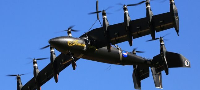 NASA Langley Araştırma Merkezi tarafından üzerinde uzun zamandır çalışılan hava aracı Greased Lightning (GL-10), bünyesinde 10 adet elektrik motoru taşıyor, gücünü dahili bataryalarından sağlıyor ve insansız olarak yerden kontrol edilebiliyor. Birçok benzerinden 3 metre genişliğe sahip kanatlarının yukarıya doğru katlanabiliyor ve böylece helikopter gibi kalkış yapabiliyor olmasıyla ayrılan araç, yüksek sürat gereken durumlarda ise kanatlarını tekrardan ileriye döndürerek meşhur V-22 Osprey gibi uçak formunu alabiliyor.