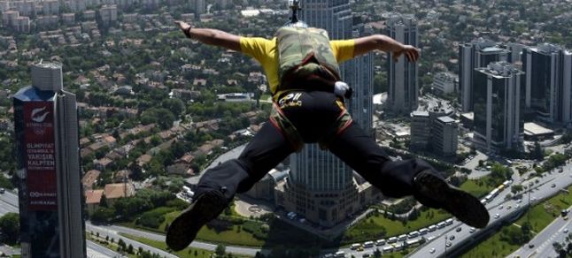Avrupa’nın en yüksek binası Sapphire, muhteşem bir etkinliğe ev sahipliği yapıyor. 18 ayrı ülkeden 62 lisanslı profesyonel paraşütçünün katılacağı BASE Jump şampiyonası başladı. Çıplak paraşüt atlayışı yapan ve sualtı dalgıcı olan ünlü fotomodel Roberta Mancino da yarışmaya katıldı. Mancino, "Şuanda atlayışa konsantre olmaya çalışıyorum. Daha önce daha yüksek binalardan da atladım. Burada ilk atlayışım olacak. Heyecandan çok konsantre olmaya çalışıyorum. Dört yıl önce atlamaya başladım. Yaklaşık sekiz bin atlayış gerçekleştirdim. İstanbul’da ilk kez atlayacağım. Dün İstanbul’u yeteri kadar gezme fırsatı buldum. Şuanda atlayışları seyrediyorum. İstanbul güzel şehir ve çok etkilendim. Burada olduğum için mutluyum" ifadelerini kullandı.