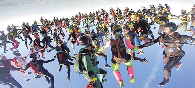 Rekor atlayış, 31 Temmuz’da ABD’nin İllinois eyaletinde düzenlenen organizasyonda 164 paraşütçünün ‘el ele tutuşması’ ile gerçekleştirildi. Önce 7 adet paraşütçü atma uçağı, birbirine yanaşık düzende 20 bin feet’e tırmandı. Sonra da, her bir uçaktaki 20 kişiden 10’u, James Bond filmlerindeki gibi atlayış sinyali geldikten sonra kendini boşluğa bıraktı. Ardından diğer 10 kişi atladı ve 20 paraşütçü, uçağı ortalama 4 saniyede terk etti. Diğer uçaktan atlayanlar ise merkezdeki grup etrafında belirlenen sıra ve şekilde yerini alıp, tutması gereken kişinin elini veya kolunu tutarak rekoru gerçekleştirdi. Gelen onayın ardından da, en dıştaki gruplar 7 bin 500 feette, ortadakiler 6 bin 500 feette, en içteki gruplar da 5 bin 500 feette gruptan uzaklaşıp paraşütlerini açmaya başladı ve rekor atlayış tamamlandı. Uçaktan ilk paraşütçünün çıkması ile formasyonun dağılmaya başlaması arasında ise sadece 55 saniye süre geçti.
