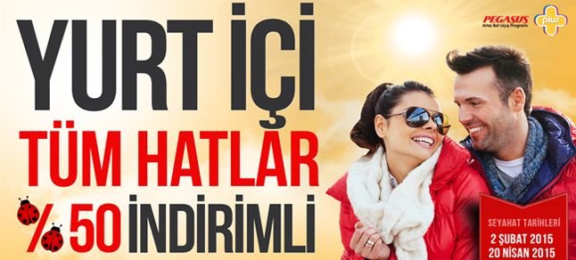Ocak ayı Uç Uç Günleri kapsamında, 8-9 Ocak tarihleri arasında www.flypgs.com web sayfası üzerinden yurt içi uçuşları için bilet alan tüm Pegasus Plus üyeleri, 2 Şubat – 20 Nisan tarihleri arasında Salı ve Çarşamba günleri gerçekleştirecekleri uçuşlarda yüzde 50 indirimli uçma fırsatı elde ediyor.