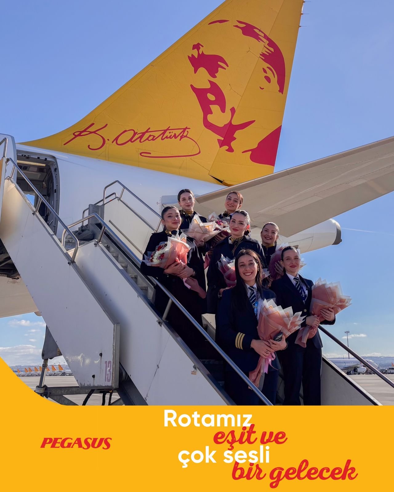 Pegasus tarafından yapılan açıklamada, Dünya Kadınlar Günü’ne özel gerçekleştirilen bu uçuşun, hayallerinin peşinden gitmek isteyen kadınlara ve kız çocuklarına ilham vermesinin amaçlandığı vurgulandı.