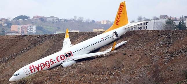 Pistten çıkan uçak kaderine terk edildi