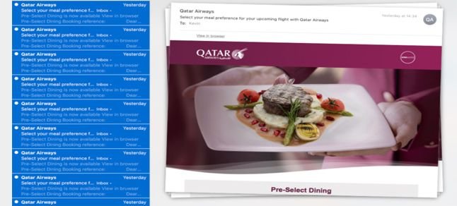 Bir premium class menüsü seçmek için müşteriler, Qatar Airways web sitesindeki "Seyahatlerim" bölümüne giriş yapabilir ve uçuşlarında mevcut olan sezonluk menüden istedikleri yemeği seçebilirler. Yemekler ayrıca, Qatar Airways mobil uygulamasından da sipariş edilebilir.