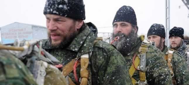 RIA Novosti’nin haberine göre, sahra tipi bir kilise ile donatılan rahipler önceki gün düzenlenen bir tatbikatla havadan indirme yaparak düşmana gözdağı, dostlara ise manevi kuvvet verdi.