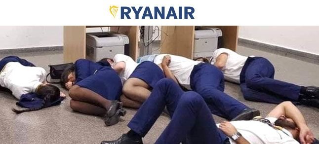 Bununla birlikte Ryanair hiçbir kabin görevlisinin yerde uyumadığını öne sürdü.