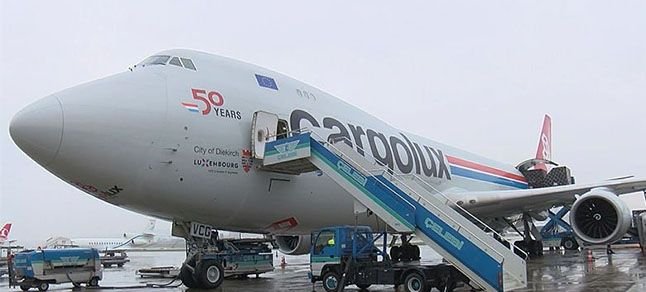 Saat 15.50’de havalimanına inen Cargolux Airlines İnternational şirketine ait Boeing 747 8F tipi kargo uçağındaki araç ve ekipmanlar, çok sayıda personel tarafından tırlara taşındı.