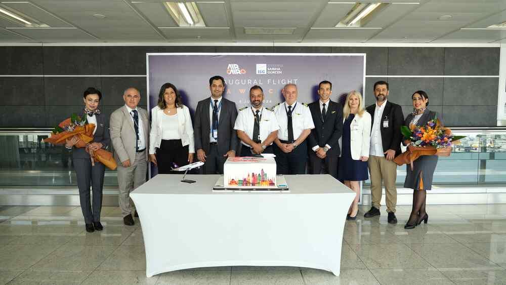 Mısır merkezli havayolu şirketi Air Cairo, İstanbul Sabiha Gökçen Uluslararası Havalimanı’na (İSG) ilk uçuşunu 6 Haziran 2024 tarihinde gerçekleştirdi. Avrupa’nın en yoğun ilk 10 havalimanı arasında yer alan Sabiha Gökçen, yeni rotalarla küresel ağını genişletmeye devam ediyor. İlk uçuş, su takı seremonisi ile karşılanırken, yolcular terminalde çiçek ve çikolatalarla karşılandı.