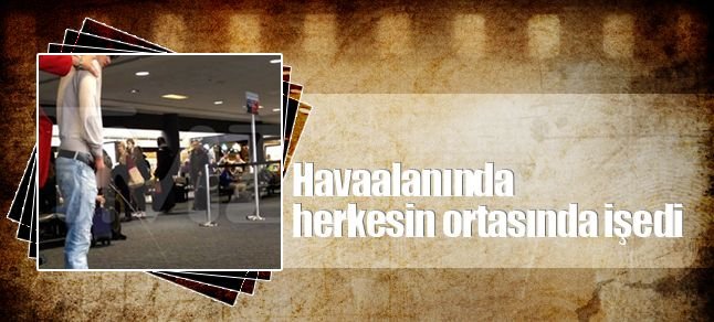 Görüntülerde sarhoş olduğu anlaşılan Pelletier, havaalanı çalışanıyla konuşurken birden cinsel organının çıkarıp işemeye başlıyor.