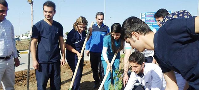 Konuşmaların ardından havalimanı çevresine çam fidanları dikildi.