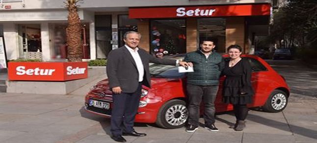 Çekilişin en büyük hediyesi olan 2018 model Fiat 500 S6 Lounge 1.2 Fire 69 HP Dualogic Tutku Kırmızı renkli aracı İzmir’den kazanan Batıkan Güzeller, aracını Setur Suadiye şubesinde Setur Turizmden Sorumlu Genel Müdür Yardımcısı Murat Tomruk’tan teslim aldı.