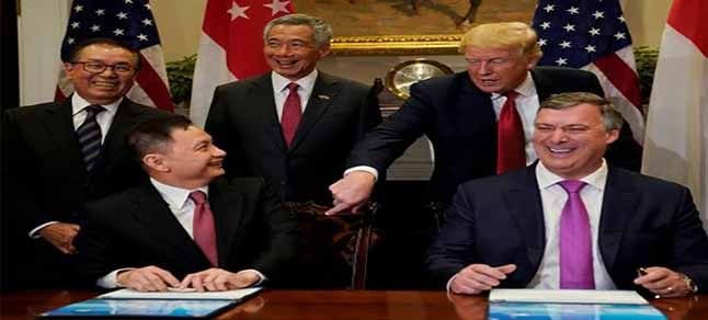 Anlaşma, Washington DC’deki Beyaz Saray’da ABD Başkanı Donald Trump ile Singapur Başbakanı Lee Hsien Loong’un da hazır bulunduğu seremonide (yerel ABD saatine göre 23 Ekimde) imzalanmıştır Atılan imzalar, Şubat 2017’de niyet mektubu olarak duyurulan anlaşmayı kesinleştirdi.