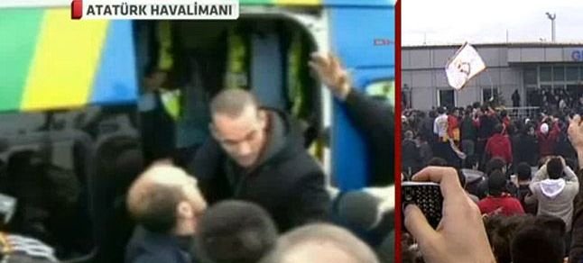 Hollandalı yeni transferi karşılamak için havaalanına gelen ve erken saatte toplanmaya başlayan sarı-kırmızılı taraftarlar, Sneijder’ı getiren özel uçağın indiği Genel Havacılık Terminali’ne toplandı.