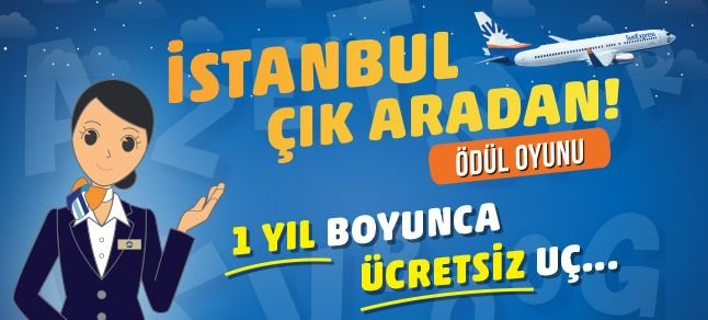 Türk Hava Yolları ile Lufthansa’nın ortak kuruluşu SunExpress, aktarmasız uçuşlara dikkat çekmek amacıyla başlattığı İstanbul Çık Aradan temalı tanıtım kampanyası çerçevesinde İstanbul’u aradan çıkararak kelime oyunu kazanan bir kişiyi bir yıl boyunca uçuş ağında bulunan iç hat destinasyonlarına ücretsiz uçuracak.  Kampanyanın mikro sitesi istanbulcikaradan.com’da takipçilerin beğenisine sunulan ödüllü kelime oyununda yarışmacıların yapması gereken tek şey tema olarak İstanbul’u SunExpress’in direkt uçtuğu şehirlerin arasından çıkarmak.