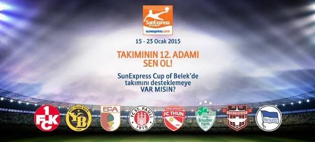 Almanya’da geleneksel hale gelen SunExpress Cup bu yıl Belek’te düzenleniyor. Türkiye’den Gaziantepspor, Bundesliga’dan 4 ve İsviçre Süperlig’inden 2 takımın katılacağı ve iki ayrı turnuvadan oluşacak olan SunExpress Cup Of Belek 15 Ocak Perşembe günü başlayacak.