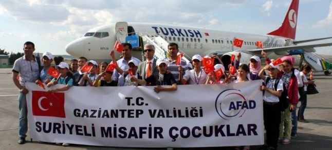 Hatay, Kilis, Adıyaman, Şanlıurfa, Kahramanmaraş, Osmaniye, Adana ve Gaziantep ‘ te bulunan çadır kentler ve konteynır kentlerde seçilen çocuklar 23 Nisan coşkusunu yaşayacak. Çocukların kutlamalara katılabilmesi için harekete geçen AFAD her kamptan seçtiği çocukları Gaziantep ‘ e getirdi. Yaklaşık 110 Suriyeli çocuk tercümanlar ve öğretmenleri eşliğinde İzmir ‘ e gitmek üzere akşam saatlerinde Gaziantep Havalimanı ‘ na getirildi. Kendileri için gelen Türk Hava Yolları ‘ nın özel uçağına binen Suriyeli çocukların mutluluğu yüzlerine yansıdı. Suriyeli çocuklar ve beraberindekilerin işlemlerinin tamamlanmasının ardından uçak İzmir ‘ e gitmek üzere havalandı.
