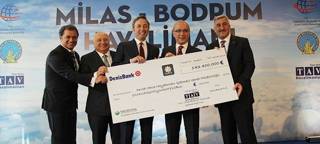 Havalimanı işletmeciliği sektöründe küresel bir marka konumunda bulunan TAV Havalimanları, portföyüne kattığı 14. havalimanı Milas – Bodrum için DHMİ’ye taahhüt ettiği 717 milyon Avro + KDV’nin yüzde 20’lik peşinatını ödedi. Gerçekleştirilen törenle 143 milyon 400 bin Avro’luk temsili çek, Ulaştırma, Denizcilik ve Haberleşme Bakanı Lütfi Elvan’a, TAV Havalimanları Yönetim Kurulu Başkanı Hamdi Akın ve İcra Kurulu Başkanı Sani Şener tarafından takdim edildi. Milas Bodrum Havalimanı’nın temsili anahtarı da TAV yöneticilerine verildi.