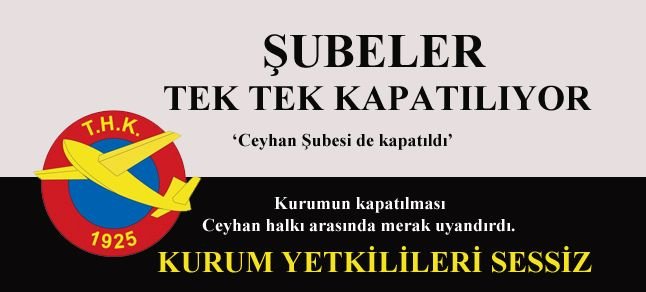 Kapatılma kararının ardından TÜRK HAVA KURUMU CEYHAN ŞUBESİ LEVHASI, feshedilen yönetim kurulu ve genel saymanın nezaretinde yerinden sökülerek hizmet faaliyeti sona erdi..