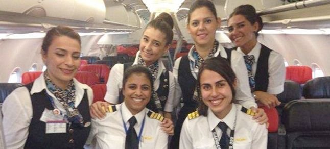 Türk Hava Yolları’nın (Türk Hava Yolları THY) 81 yıllık tarihinde bir ilk yaşandı. Türk Hava Yolları THY’deki kadın kaptan pilotların sayısının artışına enlem olarak uçuş programlarının denk geldiği zamanlarda kokpit ve kabin ekiplerinin tamamı kadınlardan oluşuyor. Bu uçuşlardan biri, geçen ay İstanbul-Nice-İstanbul arasında yapıldı.