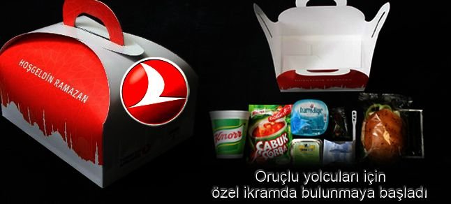 Türk Hava Yolları (THY), oruçlu yolcuları için iftarda içinde baklava, pide ve hurma olan özel ikramda bulunmaya başladı. İftar saatine denk gelen iç ve dış hat uçuşlarındaki ikramlar business ve ekonomi sınıflarında uçanlar için hazırlandı.