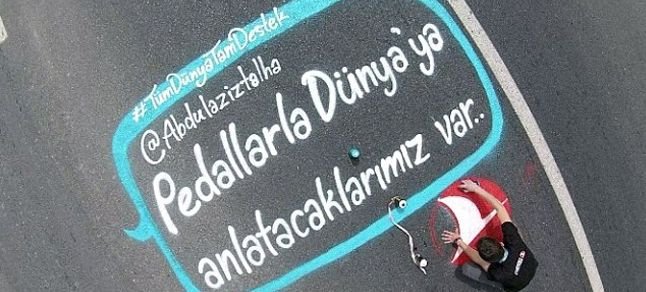 51. Cumhurbaşkanlığı bisiklet turu sponsorlarından THY, bisikletçilere destek için ilginç bir kampanya başlattı. Sosyal medyadaki takipçilerinden destek mesajları yazmalarını isteyen THY, bunların içerisinden seçilenleri bisikletçilerin geçeceği güzergahlardaki asfaltlara grafiti ile yazdı. THY’nin renkli etkinliği havadan böyle görüntülendi.