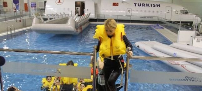 Türk Hava Yolları Uçuş Eğitim Merkezi’nde kabin ekiplerinin eğitimi en kötü senaryoya göre hazırlanıyor. Uçağın denize inmesi durumunda kabin memurlarının neler yapacağı en ince ayrıntılarına kadar kursiyerlere öğretiliyor. Kabin memuru adayları Türk Hava Yolları Uçuş Eğitim Merkezi’nde bulunan büyük havuzda uçağın denize inmesi canlandırılarak kursiyerlere eğitim veriliyor. Kabin ekiplerinin eğitiminde özellikle uygulamalı eğitime çok önem veriliyor. Kursiyerler, uçakta yangın, basınç düşüklüğü ve panik halinde neler yapılacağına dair sürekli uygulama yapıyorlar. Kursiyerler uçakta olası bir tahliye anında tahliye slide’larından atlayarak eğitim görüyor. Uçuşlarda tüm riskler uygulamalı anlatılıyor.