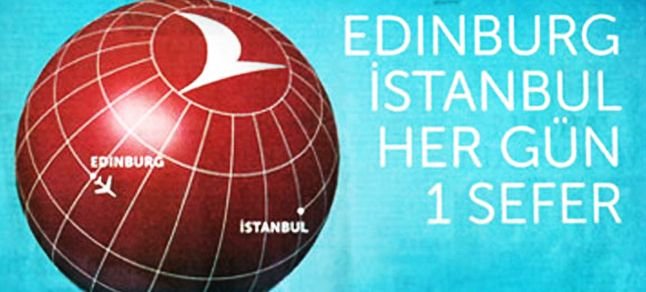 İşte THY’nin birkaç yüz adet dağıtılan ve satışı da çok sembolik olan Hürriyet İngiltere baskısında yayınlanan yarım sayfa renkli Edinsburgh reklamı…