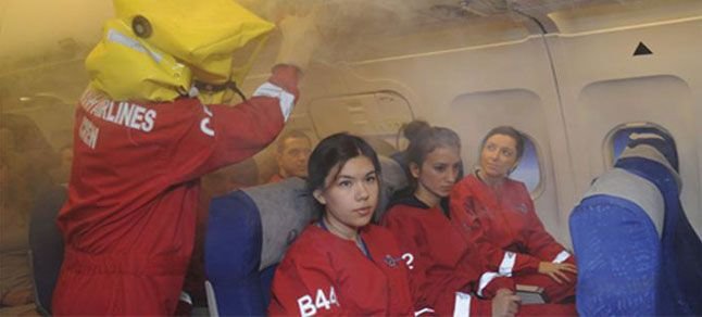 Uçuş Eğitim Merkezi’nde kabin ekiplerinin eğitimi en kötü senaryoya göre hazırlanıyor. Yangın durumunda neler yapılması gerektiği gün içerisinde defalarca tekrarlanıyor. Kursiyer kabin görevlileri bazen yolcu bazen görevli olarak gün içinde sürekli eğitime tabi tutuluyorlar. Havada en kötü senaryoya göre eğitimlerini yapan kursiyerler, uçakta yangın, basınç düşüklüğü ve panik halinde neler yapılacağına dair sürekli uygulama yapıyorlar.