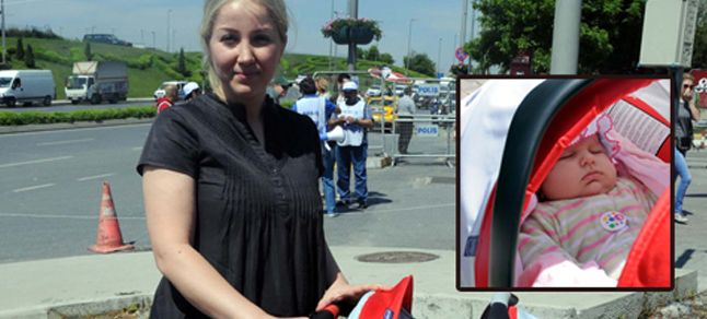 "29 Mayıs 2012’de ben de işten atılan işçilerden biriyim. O dönemde hamile olduğumu işten çıktıktan yani atıldıktan bir, bir buçuk ay sonra fark ettik. Doğum yaptım ve bebeğim 13 Mayıs’ta iki ayını doldurdu. Arkadaşlarıma destek için buraya geldim. Umarım bizi işe geri alırlar. Çünkü biz haksız yere atıldık. Herhangi bir suç işlemedik. Kimseye zarar vermedik. Zeynep Beren koyduk adını göbek adı da Diren direnişten geliyor. 9 yıldır THY’de kabin amiriydim."
