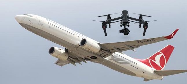 Türk Hava Yollarının Zürih- İstanbul seferini yapan Airbus 321 tipi uçağı Atatürk Havalimanı’na iniş için alçaldığı sırada, uçağın 700 metre yakınından bir drone geçtiğini gördü. Atatürk Havalimanı Hava Trafik Kontrol Kulesi ile telsiz bağlantısı kuran THY pilotu," Efendim yaklaşık 14,15 mil uzaklıkta, yaklaşık 2 bin 500 fitte bir drone gördüm. Bilginize" dedi.