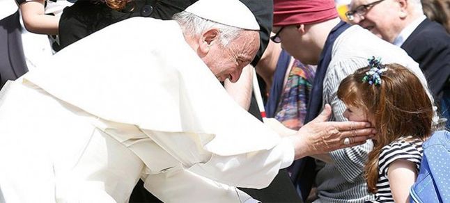 Oturumdaki duanın ardından Papa, Lizzy’nin yanına gelerek bir süre sonra görme yetisini kaybedecek küçük kızla yakından ilgilendi, sohbet etti. Lizzy, Papa’ya evinin bahçesinin yakınlarına düşen göktaşı parçası verdi. Ruhani lider de Lizzy’i takdis etti ve kendisi için dua edeceğini söyledi.