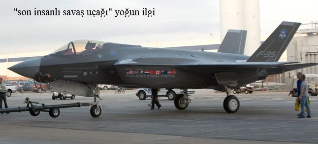 Uluslararası Savunma, Güvenlik Ekipmanları Fuarı’nda, üretiminde Türkiye’nin de yer aldığı son insanlı savaş uçağı olarak değerlendirilen F-35 müşterek taarruz uçağı, fuar merkezinin önündeki geniş alanda sergileniyor. Türkiye’nin yanı sıra ABD, İngiltere, İtalya, Fransa, Kanada, Avusturalya, Danimarka, Norveç işbirliğiyle üretilen ve gövdesinde Türk bayrağı taşıyan 15 milyar dolar değerindeki uçağa ziyaretçiler yoğun ilgi gösteriyor. Türkiye Amerika’dan 100 adet F-35 savaş açağı almayı planlamış ancak, Amerika’nın uçaklara ait uçuş kodlarını vermek istememesi nedeniyle iptal edilmişti.