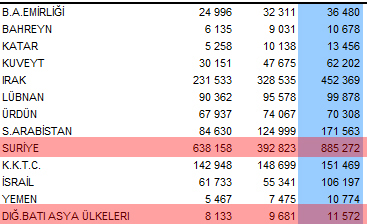 Bakanlığın açıkladığı ziyaretçi istatistiklerinde "Diğer Batı Asya Ülkeleri" başlığı altındaki ziyaretçi sayısı ilk 8 ayda 11 bin 572 iken, Suriye’nin de bu başlık altına eklenmesiyle birlikte bu sayı ocak – eylül döneminde 998 bine çıktı. Ocak – ağustos arasındaki dönemde Suriye’den Türkiye’ye 885 bin "ziyaretçi" gelmiş görünüyordu.