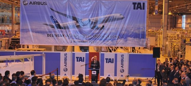Şirketten yapılan yazılı açıklamaya göre, TUSAŞ ve AIRBUS firmaları arasında yaklaşık 2 yıl önce A350-1000 sözleşmesi imzalandı. TUSAŞ, tasarımını ve üretimini gerçekleştirdiği ilk A350-1000 Aileron setini, Ankara Kazan’daki tesislerinde gerçekleştirdiği törenle AIRBUS firmasına teslim etti.