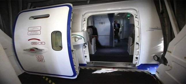 Hayatında ilk defa uçağa bindiği belirtilen deneyimsiz yolcu lavabo kapısı zannedip, acil çıkış kapısını açınca, uçağın hızlıca tahliye edilmesi için tasarlanan kaydırak şişti.
