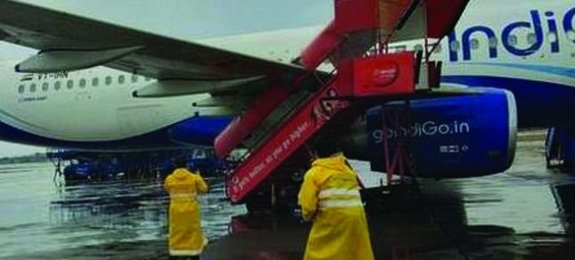 Mumbai havalimanında park halinde bekleyen IndiGo uçağına, şiddetli rüzgarın etkisiyle SpiceJet’e ait mobil merdiven çarptı. Çarpmanın etkisiyle uçağın sağ kanadı zarar gördü.