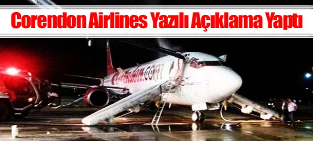 Corendon Airlines’tan yapılan yazılı açıklamada, yangının çıkış nedeninin, uçağı inceleyecek olan resmi otoriteler ve Boeing teknik ekibi raporları neticesinde netleşeceği bildirildir. Açıklamada, "Uçuşa 3 pilot 5 kabin memuru katıldı. Kaptanlar Hüseyin Çıldır, Liselott Rasmussen, First Officer Savaş Koçyiğit. Kaptan pilot Hüseyin Çıldır, acil tahliye yapılmasına karar vermiş, kabin ekibi tarafından uçakta bulunan 189 yolcu ve bir bebeğin tahliye işlemi başarıyla gerçekleştirilmiştir" denildi.